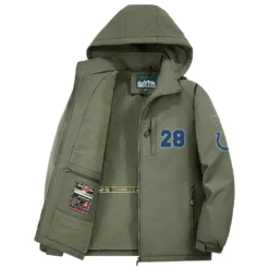 – Stay warm and stylish this winter with our long sleeve hooded windbreaker jacket