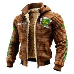 Cultivation Tractor Fleece-Lined Hooded Jacket, Multi-Sport Winter Active Top HVN1452JD – brown