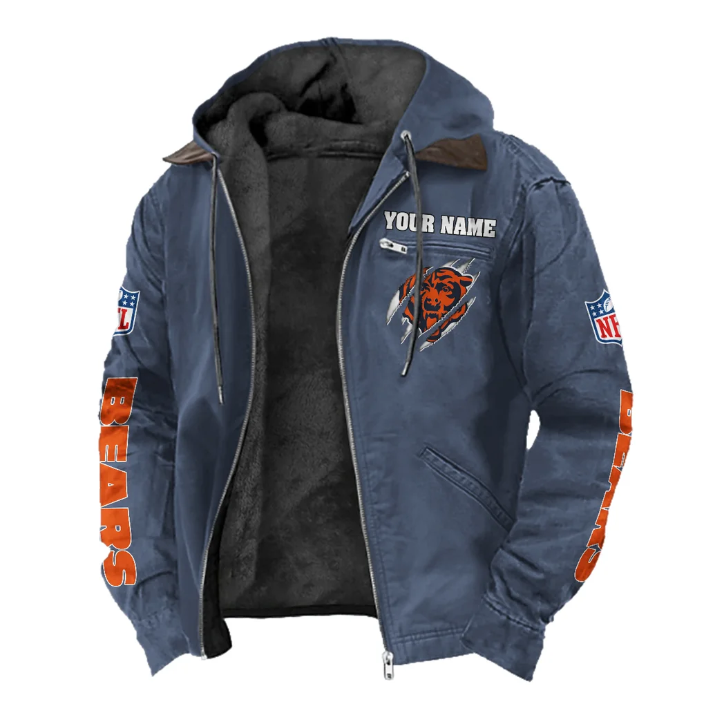 Fan Cubs Squad Flannel Hoodie, Casual Sport Hooded Flannel HVN1438CB – Navy Blue