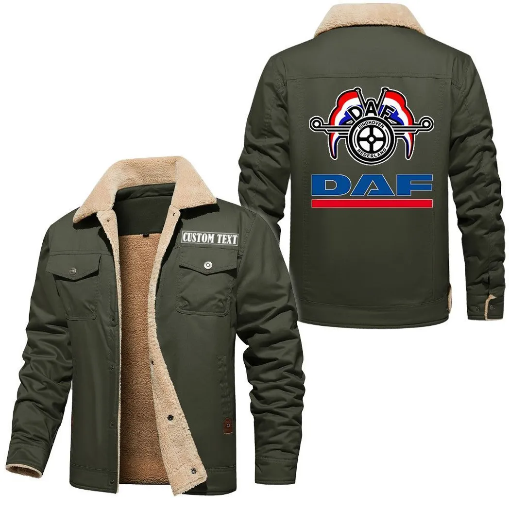 Freight Truck Jacket Fur Collar Fleece, Automotive Spirit Fur Jacket CAR566 - Military Green Freight Truck Jacket Fur Collar Fleece, Automotive Spirit Fur Jacket CAR566 - Military Green