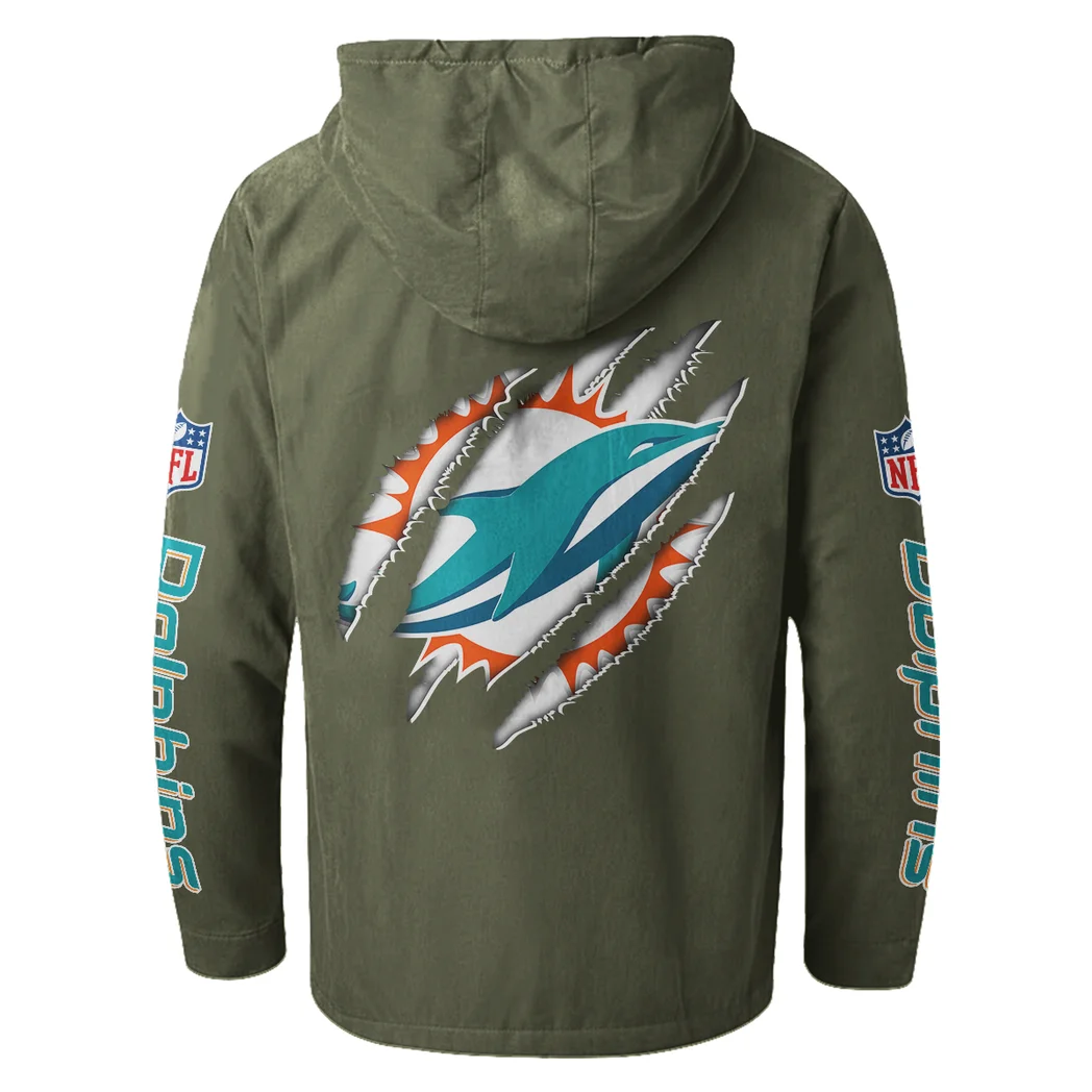 Match Day Dolphins Flannel Hoodie, Fan Pride Hooded Flannel HVN1438MD – Green