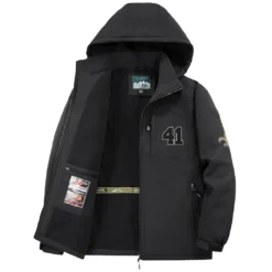 – Stay warm and stylish this winter with our long sleeve hooded windbreaker jacket