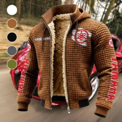 Motorbike Fleece-Lined Hooded Jacket, Warmth-Lock Fleece-Lined Zip HVN1452YA - brown Motorbike Fleece-Lined Hooded Jacket, Warmth-Lock Fleece-Lined Zip HVN1452YA - brown