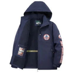Retro-Inspired Car Fleece Windbreaker Jacket, Luxe Fleece Exterior HVN1452SH – Navy