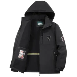 – Stay warm and stylish this winter with our long sleeve hooded windbreaker jacket