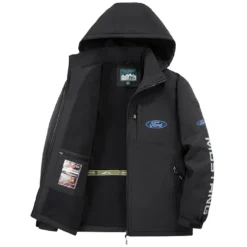 Street Performance Car Fleece Windbreaker Jacket, Cozy Fleece-Lined Windbreaker HVN1452FM – Black
