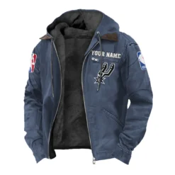 Streetwear Court Culture Flannel Hoodie, Supporter Spirit Hooded Flannel HVN1432SA – Navy Blue