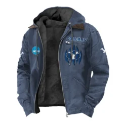 The Blue and White Flannel Hoodie, Bold Supporter Flannel Hoodie HVN1449BY – Navy Blue