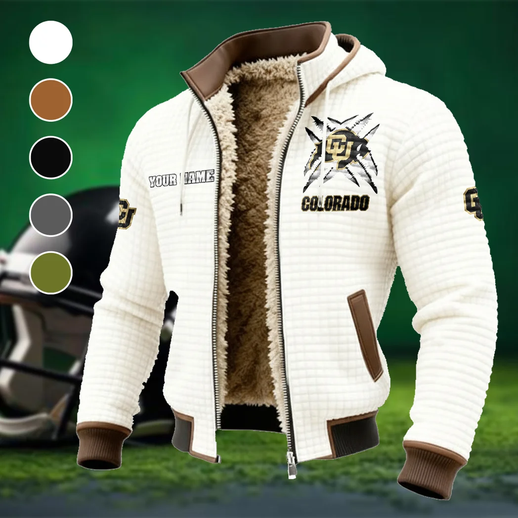 The Buffaloes Fleece-Lined Hooded Jacket, Water-Resistant Thermal Hoody HVN1454CB - White The Buffaloes Fleece-Lined Hooded Jacket, Water-Resistant Thermal Hoody HVN1454CB - White