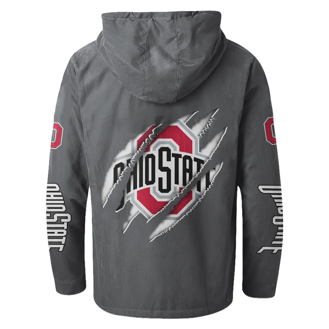 The Ohio State Power Flannel Hoodie, Fan Pride Hooded Flannel HVN1441OS - Gray The Ohio State Power Flannel Hoodie, Fan Pride Hooded Flannel HVN1441OS - Gray
